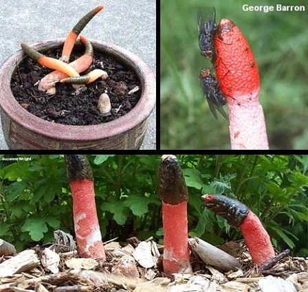 蛇頭菌學(xué)名為“Mutinus Caninus”,可以稱(chēng)得上是最丑陋的菌類(lèi)。蛇頭菌菌柄呈圓柱形,菌蓋呈鮮紅色,菌蓋頂端長(cháng)有惡臭氣味的粘稠狀孢子。