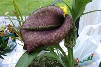 尸花學(xué)名為“Amorphophallus titanum”,有時(shí)也被稱(chēng)為“泰坦魔芋花”。尸花是世界上體型最大的花,也是氣味最臭的花,原產(chǎn)于印度尼西亞蘇門(mén)答臘島的熱帶雨林中。它們會(huì )釋放出一種腐爛的尸體的味道,這也是“尸花”名稱(chēng)的來(lái)源。它們散發(fā)臭味也是為了吸引昆蟲(chóng)前來(lái)傳粉。這種花的葉結構高度最高可達20英尺(約合6.1米),寬度最高可達16英尺(約合4.9米)。